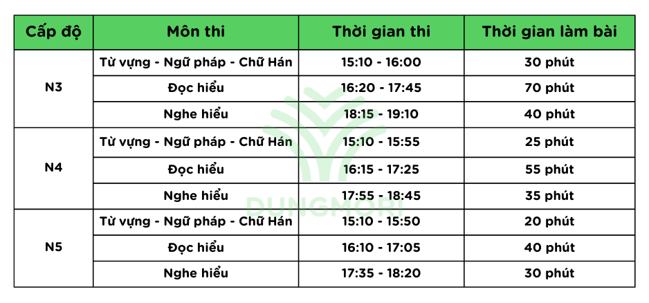 N3・N4・N5 (Thi buổi chiều theo giờ địa phương)