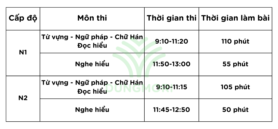 N1・N2 (Thi buổi sáng theo giờ địa phương)